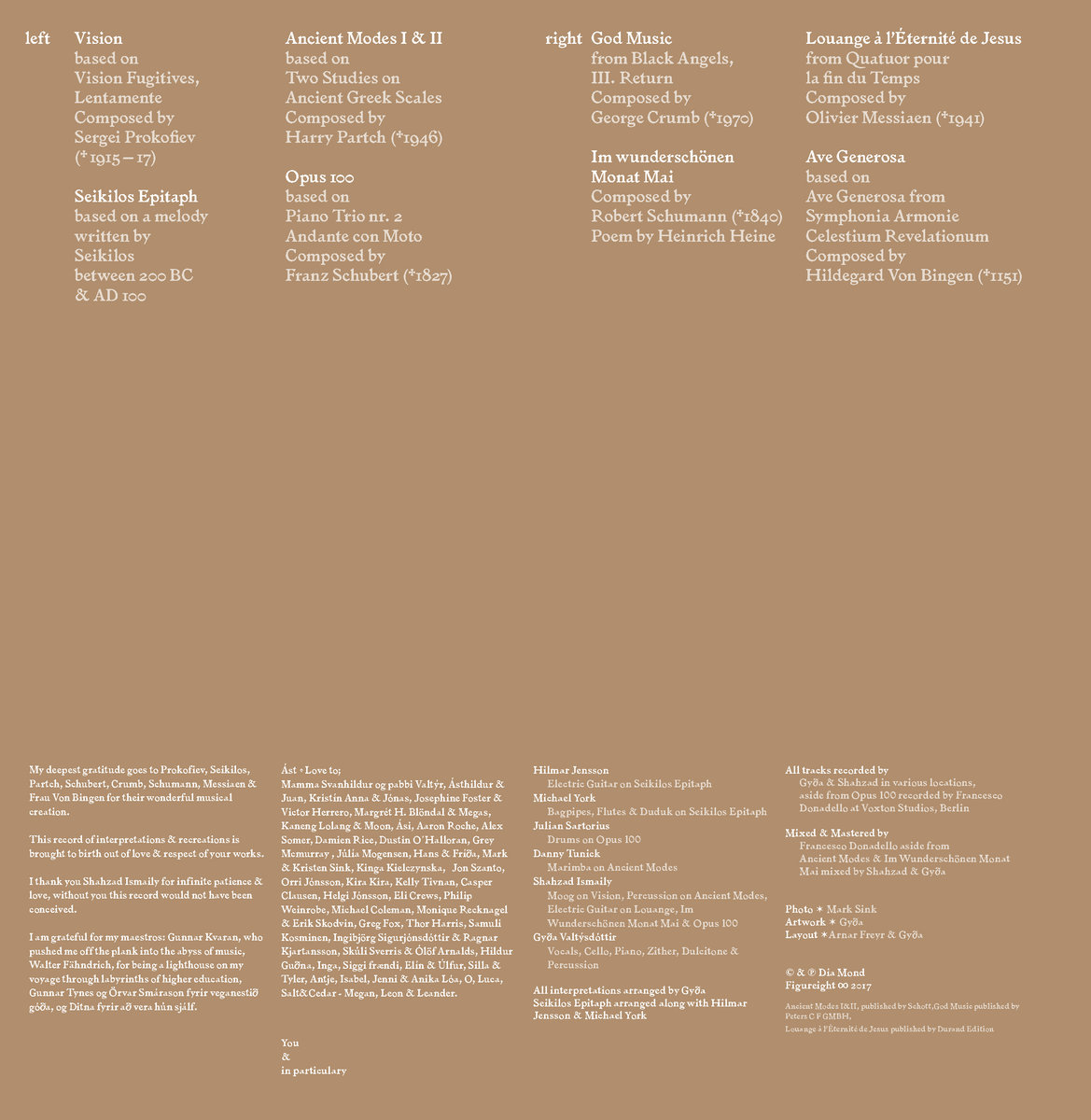 Through her musical career in the band múm, cello training in Iceland, Russia and Switzerland, and endless musical projects with musical soulmates around the world, Gyda’s musical journey has been defined by curiosity and an open mind, relentless search for the essence and deeper meaning of music. Epicycle is a love letter to her musical influences but at the same time Gyda’s approach to the music is one of playfulness and adventure where anything is possible. Allowing herself to listening carefully for the inner core and between the notes of music, ancient and new, she gives her highly delicate and intuitive renditions of music that span around two thousand years, the oldest, Seikilos Epitaph, dating from around 100 AD, the most recent, God Music from George Crumb’s Black Angels, composed in 1970. Schubert and Schumann, Hildegard von Bingen, Olivier Messiaen, Harry Partch and Prokofiev are other creators of music in Gyda’s solar system where there are no borders or walls and eternity prevails.